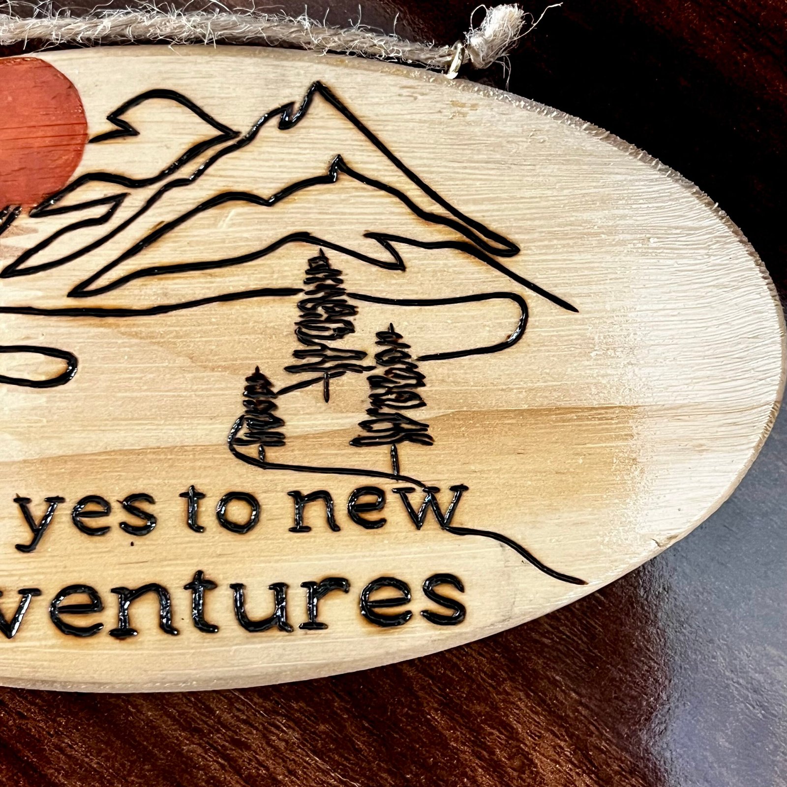 - ديكور منزلي خشبي مرسوم عليه بطريقة الحرق على الخشب مع ألوان أكريلك