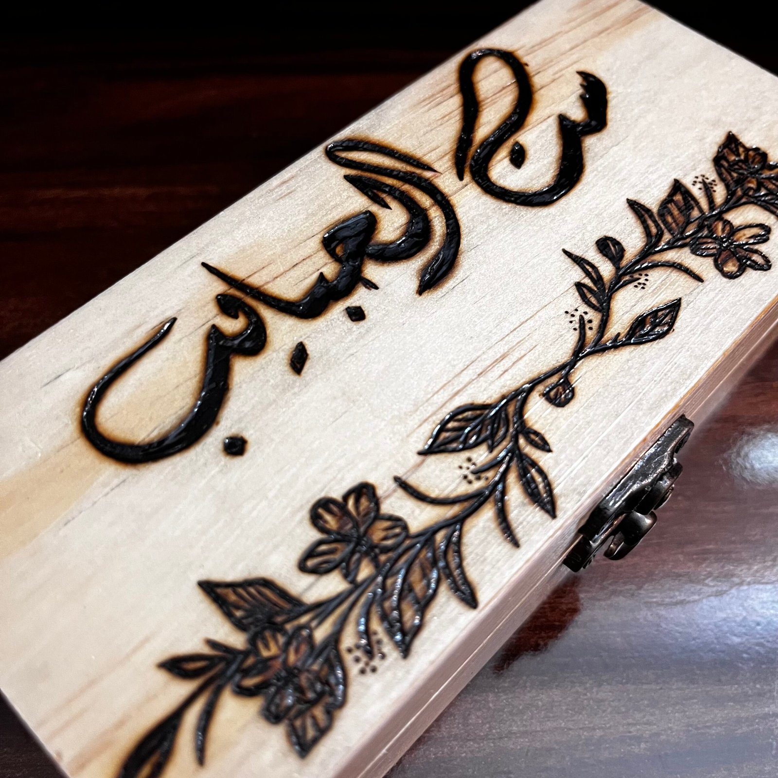 • مرسوم عليه يدويًا بطريقة الحرق على الخشب