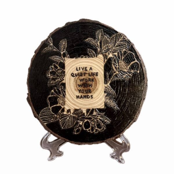 - مكتوب عليه : Live a quiet life, work with your hands”
